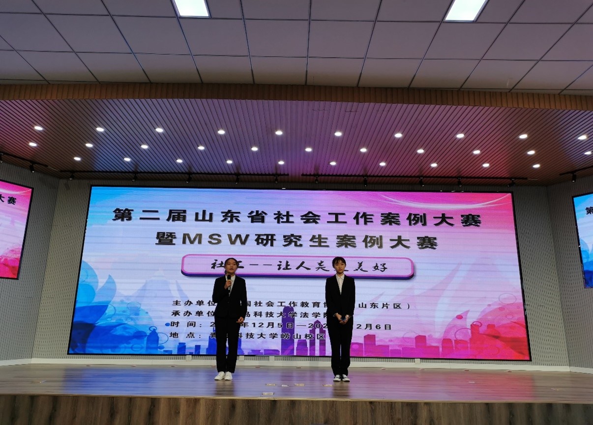 12月5日至12月6日,第二届山东省社会工作案例大赛暨MSW研究生案例大赛在sunbet官方网站崂山校区举行。此次赛事由中国社会工作教育协会(山东片区)主办,sunbet承办,以“社工-让人类更美好”为主题,。来自全省13所高校的社会工作专业本科生和研究生组成的36支代表队参加了比赛,专家、评委和师生共200余人参加了赛事活动。