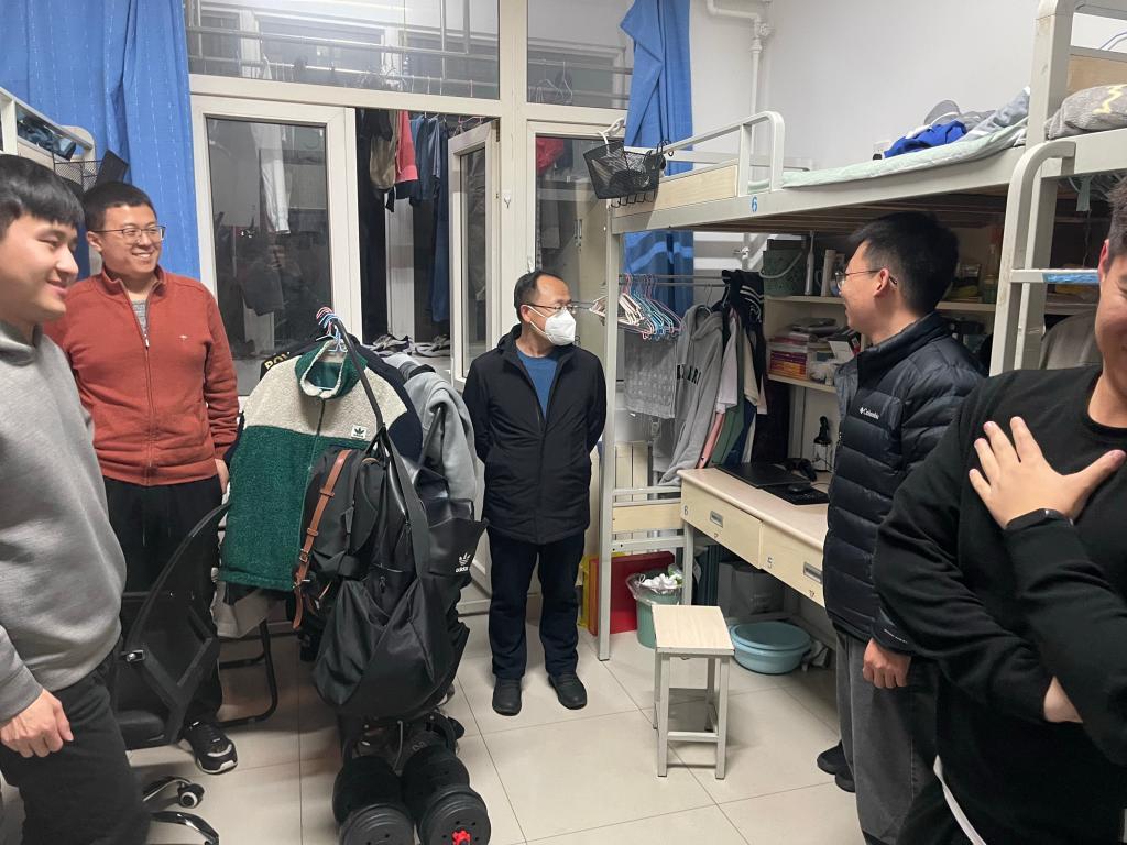 3月23日晚,公司领导班子和辅导员分别深入员工宿舍走访慰问。在走访过程中,同学们对老师们的到来表示非常欢迎和感谢,老师们也积极主动详细询问了同学们的校园学习、宿舍、生活等情况。李卉指出,当前防疫取得了一定成绩,但是仍不能有麻痹思想、侥幸心理、松劲心态,要注意保持良好的宿舍卫生环境,牢固树立宿舍安全意识,认真做好在校期间各项防护工作,同时加强身体锻炼,注重身体健康,保持积极健康的心理状态。王金堂叮嘱同学们要遵守公司各项疫情防控规章制度,加强科研和学习,积极调整状态合理安排校园学习生活。