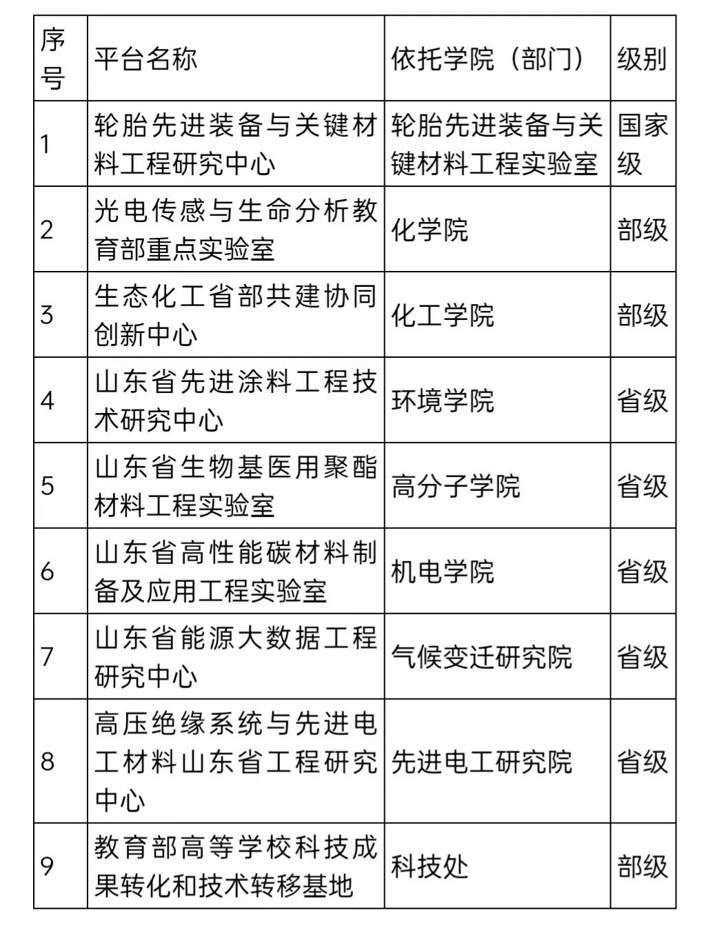 表1 第十次党代会以来公司新获省部级科研创新平台情况