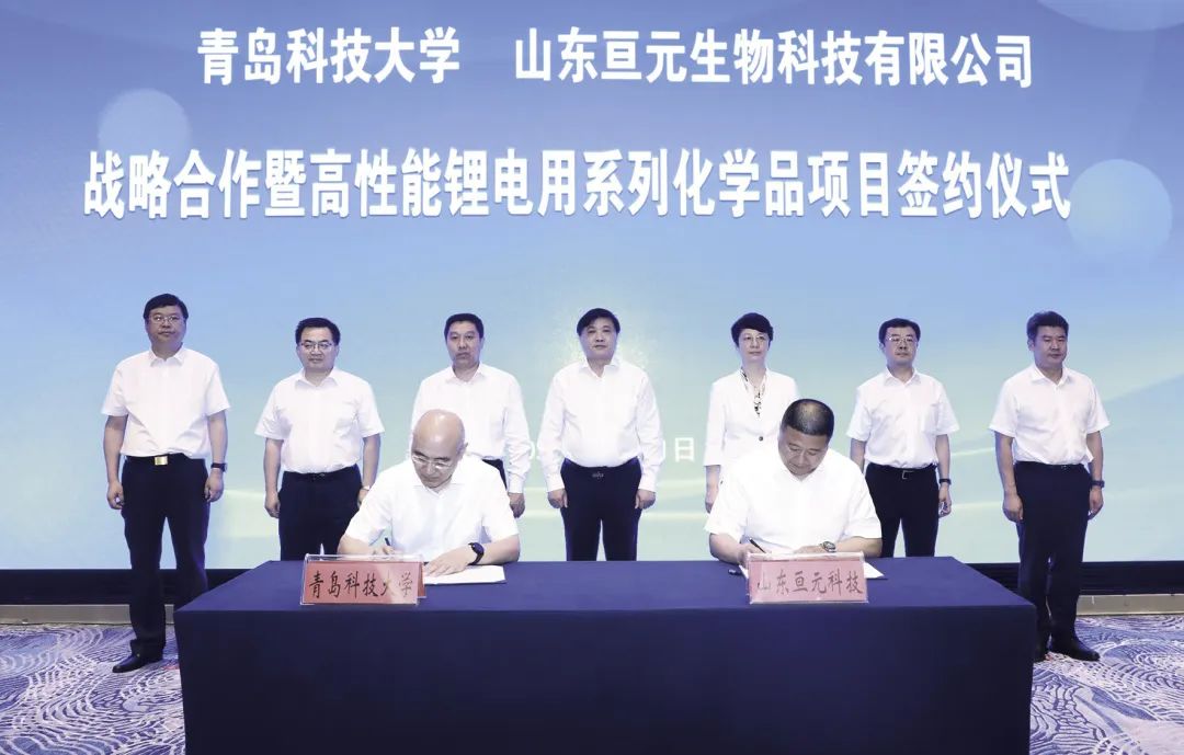 2022年7月,公司与山东亘元生物科技有限公司战略合作暨高性能锂电用系列化学品项目正式签约(图3),合同金额达到了7.7亿元,是目前山东省单笔金额最高的校企合作项目。项目全部实施后,将分别建设万吨生产装置,预计年销售收入总额60.1亿元,年利税总额24.695亿元。